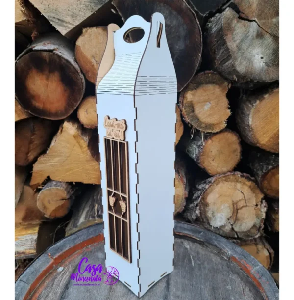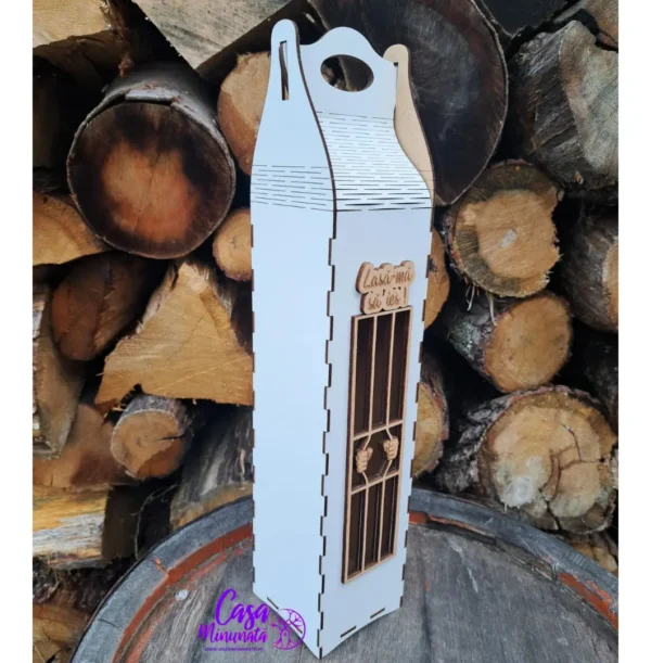 Descoperă o Cutie Vin din lemn personalizată, ideală pentru a transforma orice sticlă de vin într-un cadou deosebit.