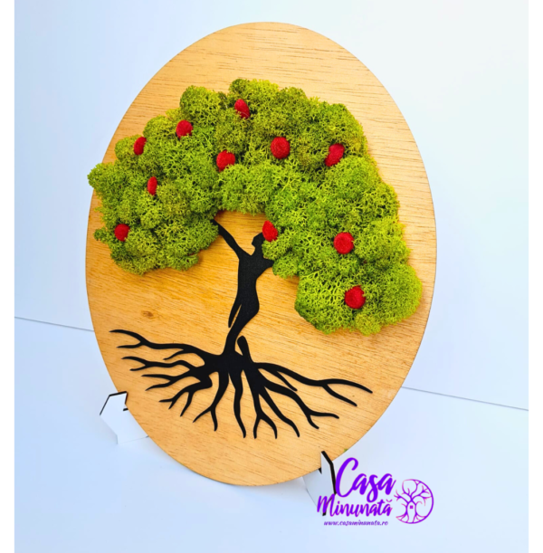 Adaugă o notă de natură și eleganță în casa ta cu acest Tablou Copacul Vietii cu licheni pe suport de lemn realizat manual. Produsul este decorat cu licheni naturali stabilizați și flori naturale uscate, care își păstrează frumusețea și prospețimea până la 10 ani, fără a necesita udare, lumină sau îngrijire specială.
